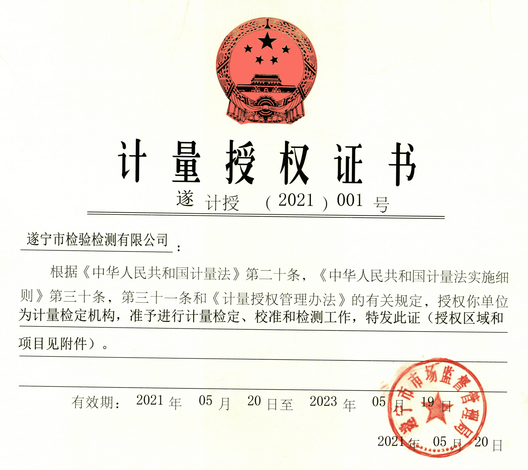 ? ? 近日,遂寧興業(yè)集團直屬企業(yè)市檢驗檢測公司計量檢測中心順利通過遂寧市市場監(jiān)督管理局計量建標授權(quán)考核,成功取得“計量授權(quán)證書”。